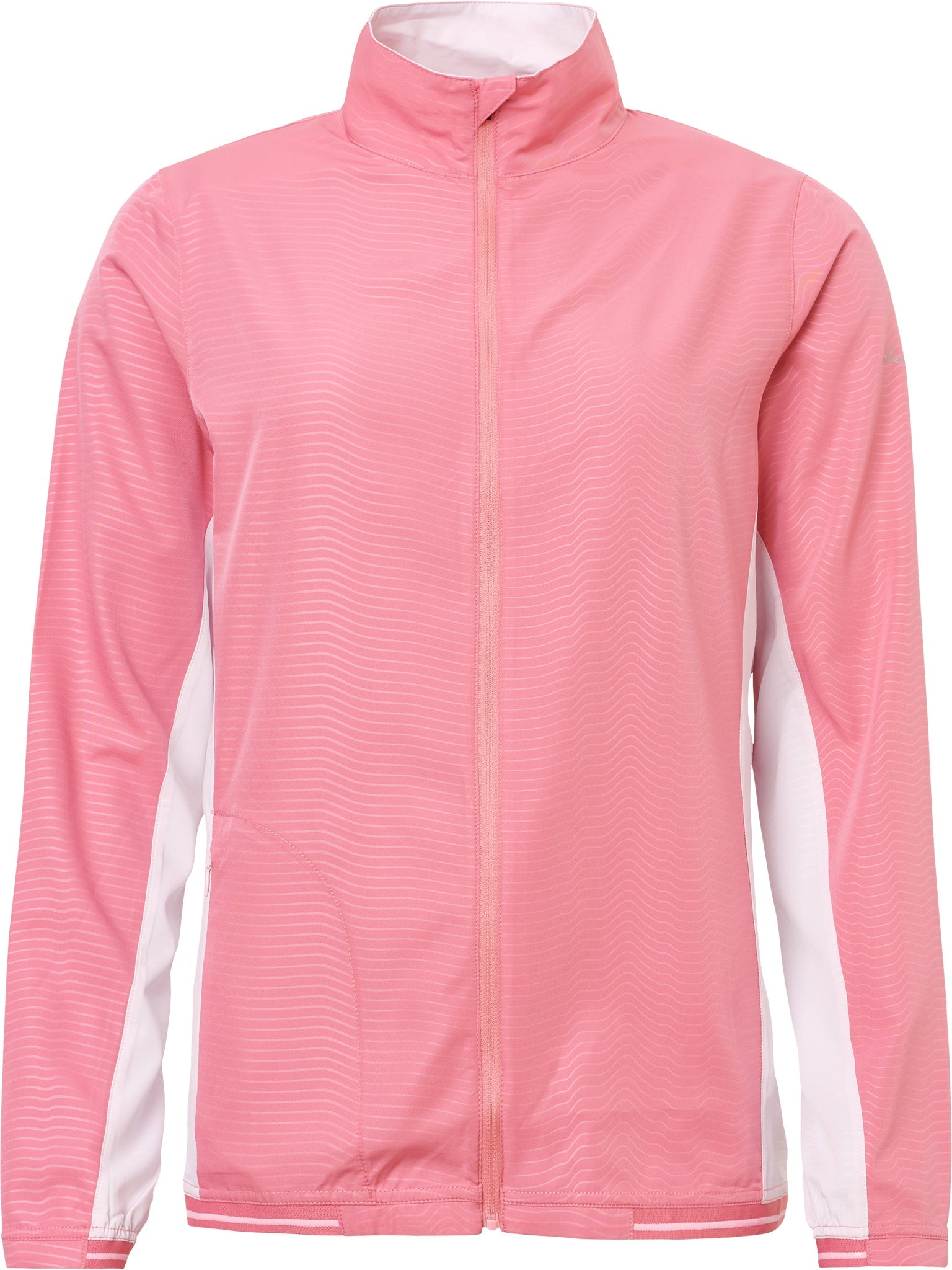 A windbreaker made in a thin, windproof fabric made of recycled polyester, which is decorated with a discreet print all over its surface. The garment is PFC free. Practical full zipper at the front and also a front pocket with zipper. Elastic edging at sleeve and hem. Abacus logos on upper left sleeve and center back under collar.